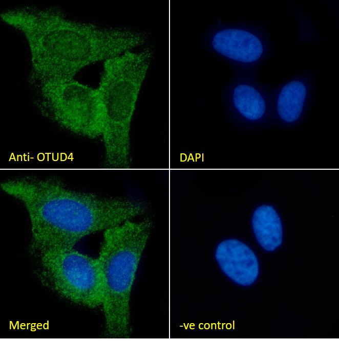 Immunofluorescence: Strong expression of the protein seen in A413 and U2OS cells. Recommended concentration: 10µg/ml.