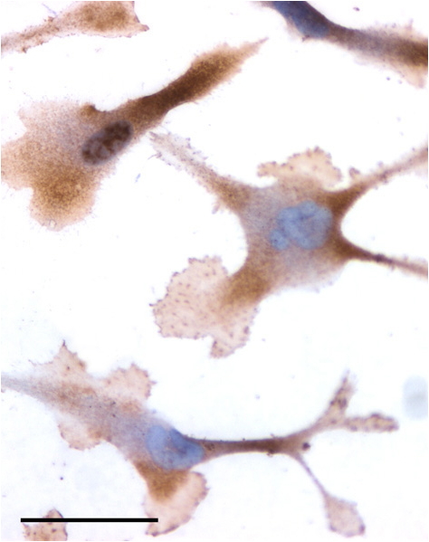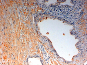 In paraffin embedded Human Prostate Cancer shows staining of the stromal component of smooth muscle. Recommended concentration: 2-4µg/ml.