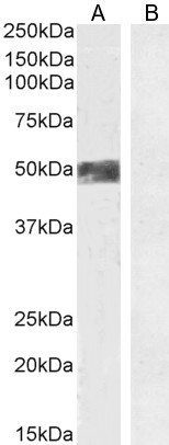 Western Blot Approx 50kDa band observed in Human Ovary lysate and in preliminary testing of Human Uterus lysate (calculated MW of 42.8kDa according to Human NP_000907.2). This molecular weight is observed by other sources and was successfully blocked by incubation with the immunising peptide. Recommended concentration: 1-3ug/ml. Primary incubation 1 hour at room temperature. | |