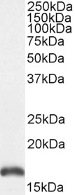 Approx.16-17kDa band observed in Mouse Kidney lysates and in lysates of cell line NIH3T3 (calculated MW of 18.8kDa according to NP_033905.3). Recommended concentration: 0.01-0.03µg/ml. Primary incubation 1 hour at room temperature.