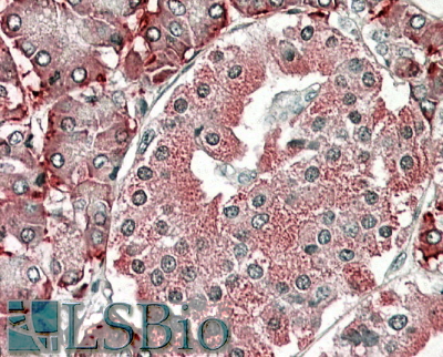 IHC Results In paraffin embedded Human Pancreas shows ER staining in the beta cells of Islets of Lagerhans . Recommended concentration, 3-5µg/ml. | |