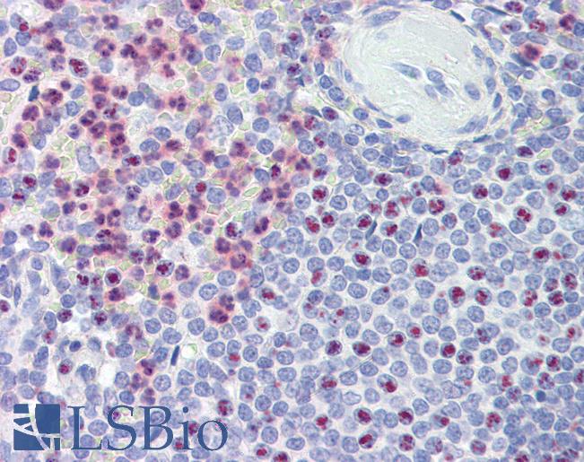 IHC Results In paraffin embedded Human Kidney shows textured cytoplasmic staining towards the basal membrane in PCT. Recommended concentration: 3-5µg/ml. Paraffin embedded Human Spleen. Recommended concentration: 3.75µg/ml. | |