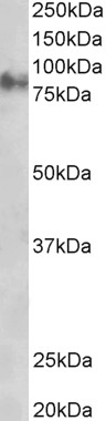 Approx 80kDa band observed in lysates of cell lines A431 and NIH3T3 and in Rat Eye lysates (calculated MW of 81.7kDa according to Human NP_002221.1 and Mouse NP_034723.1). Recommended concentration: 0.1-0.3µg/ml.