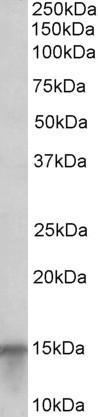 Approx 15kDa band observed in Human Skin lysates (calculated MW of 11.5kDa according to NP_002954.1). Recommended concentration: 1-3µg/ml. In transfected HEK293 transiently expressing full-length Human S100A7 (myc and DYKDDDDK tagged), a band of approx. 16kDa was observed. No bands were observed in mock-transfected HEK293 and the same band was observed using anti-myc tag antibody. Recommended concentration, 0.1-0.5µg/ml. Approx 15kDa band was also observed in Human Skin lysates (calculated MW of 11.5kDa according to NP_002954.1). Recommended concentration: 0.3-1µg/ml.