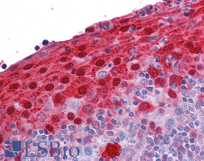 Paraffin embedded Human Tonsil. Recommended concentration: 3.75µg/ml.