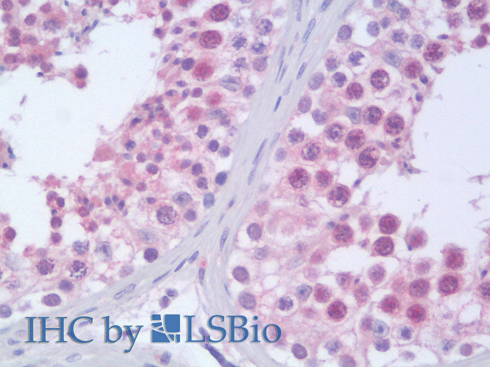 IHC Results In paraffin embedded Human Tonsil stains nuclei in epithelial cells of tonsillar criptae. Recommended concentration: 3µg/ml. Paraffin embedded Human Testis. Recommended concentration: 10µg/ml. | |