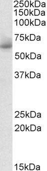 Approx 60kDa band observed in Human Testis lysates (calculated MW of 53.2kDa according to NP_057405.1). The observed molecular weight corresponds to earlier findings in literature with different antibodies (Liu et al, J Biol Chem. 2000 Aug 18;275(33):25641-51;PMID: 10852913). Recommended concentration: 1-3µg/ml. Primary incubation was 1 hour.