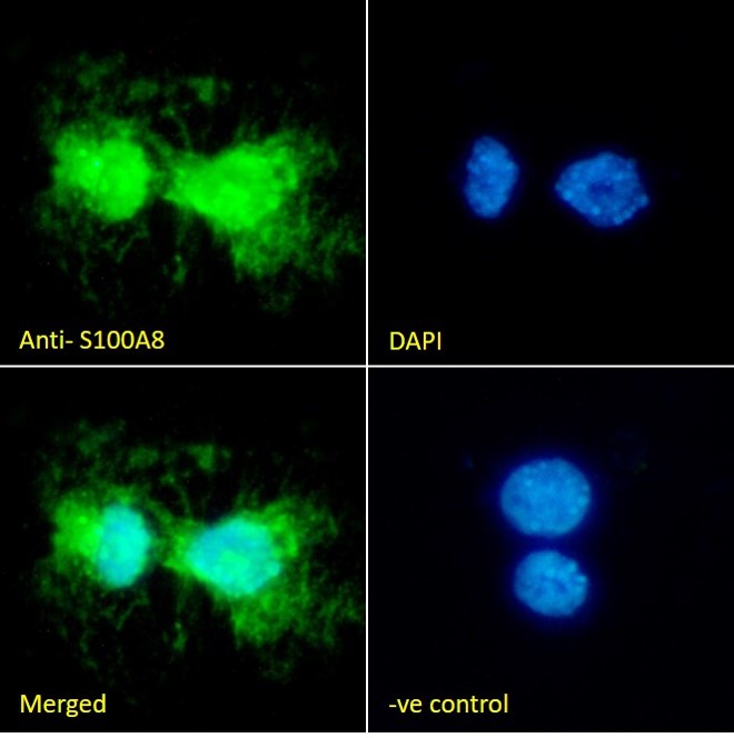 Usage Summary Immunofluorescence: Strong expression of the protein seen in the nuclei and cytoplasmic/extracellular of THP-1 cells. Recommended concentration: 10µg/ml. | |