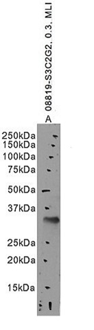 Western Blot Approx. 35kDa band observed in Mouse Liver lysates (calculated MW of 38.1kDa according to NP_035518.1). Recommended concentration: 0.1-0.3µg/ml. Primary incubation 1 hour at room temperature. | |