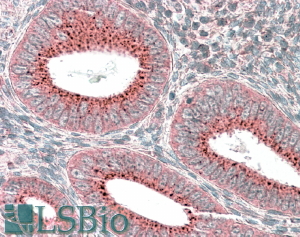 IHC Results In paraffin embedded Human Uterus shows vesicular staining in the cytoplasm of endometrial epithelium. Recommended concentration, 3-5µg/ml. | |