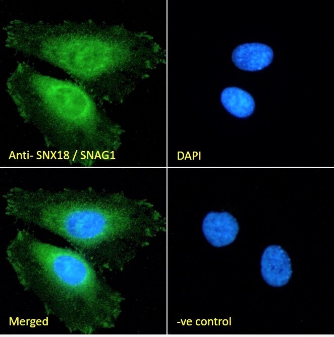 Usage Summary Immunofluorescence: Strong expression of the protein seen in HeLa and U2OS cells. Recommended concentration: 10µg/ml.