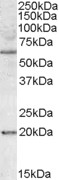 Approx. 60kDa band observed in cell lines HEK293 and HeLa lysates (calculated MW of 49.6kDa according to NP_004865.1). The observed molecular weight corresponds to earlier findings in literature with different antibodies (Takada et al, Mol Cell Biol. 2003 Jun;23(11):4026-33.; PMID: 12748303). Recommended concentration: 0.3-1µg/ml. Primary incubation was 1 hour. An additional band of unknown identity was also consistently observed at 20kDa. This band was successfully blocked by incubation with the immunizing peptide.