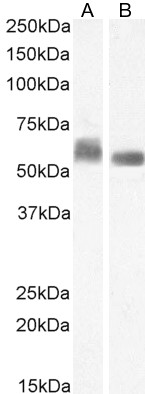 Western Blot Approx. 60kDa band observed in lysates of cell line K562, and approx. 55kDa in lysates of cell line MCF7, (calculated MW of 59.2kDa according to NP_003464.1 and 55.7kDa according to NP_001311211.1 ). Recommended concentration: 0.3-1µg/ml. Primary incubation 1 hour at room temperature. | |