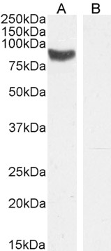 Western Blot Approx 80-90kDa band observed in Rat Testis lysates, which was successfully blocked by incubation with the immunizing peptide (calculated MW of 73.8kDa according to Rat NP_001025095.1). Recommended concentration: 1-2µg/ml. Primary incubation 1 hour at room temperature. An approx. 90kDa band was also observed in 3T3-L1 adipocytes reduced by stra6 siRNA. The 90kDa is stained after retrovirally overexpressing Mouse Stra6 and not after overexpressing Human Stra6 in 3T3 preadipocytes (calculated MW of 73.8kDa according to Mouse NP_033317.2). Primary incubation was 3 hours. | |