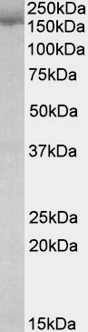 Western Blot Approx 160kDa band observed in lysates of cell line K562 and ~140kDa in rodent Spleen while ~150kDa in Mouse Thymus lysates (calculated MW of 146kDa according to Human NP_001036214.1 and 140kDa according to Mouse NP_001071180.1). Recommended concentration: 0.1-0.3µg/ml. | |