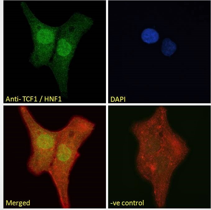 Usage Summary Immunofluorescence: Strong expression of the protein seen in the nuclei of HepG2 and U2OS cells. Recommended concentration: 10µg/ml.