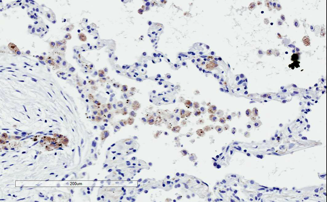 IHC Results In paraffin embedded Human Lung shows staining of alveolar macrophages. Recommended concentration: 2-4µg/ml. | |