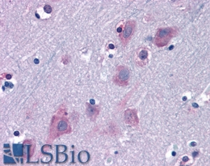 In paraffin embedded Human Brain (Cortex) shows cytoplasm stainning in neuronal cell bodies. Recommended concentration: 6-12µg/ml.