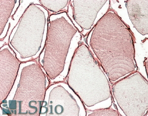 IHC Results In paraffin embedded Human Skeletal Muscle shows staining of the fibre membranes, detached artificially by the sectioning. Recommended concentration: 3-5µg/ml. | |