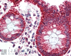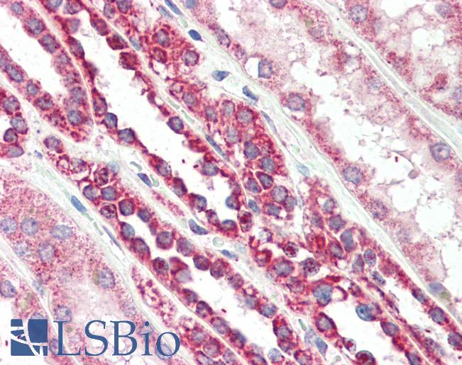 IHC Results In paraffin embedded Human Colon shows strong cytoplasm staining of absorptive cells. Recommended concentration: 2-4µg/ml. Paraffin embedded Human Kidney. Recommended concentration: 5µg/ml. | |