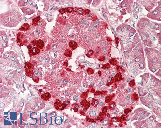 Paraffin embedded Human Pancreas. Recommended concentration: 5µg/ml.