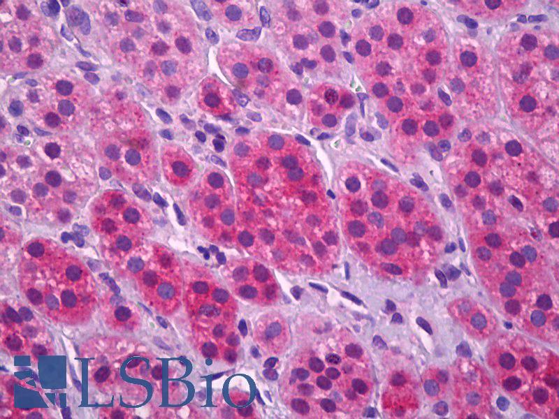IHC Results In paraffin embedded Human Cortex shows vesicular staining amongst the many axons and dendrites. Paraffin embedded Human Adrenal Coretx. Recommended concentration: 3.75µg/ml.