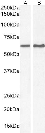A batch specific positive control lysate is available for this product. Please contact [email protected] for availability. This product has been successfully used by a customer showing a band at approx. 55-60kDa in Mouse Fetal Brain lysates (calculated MW of 55.8kDa according to NP_766111.1), at primary ab concentration of 2ug/ml. | |